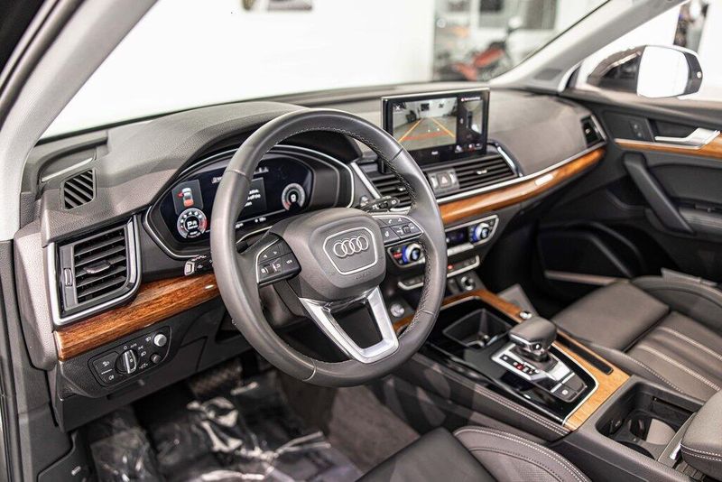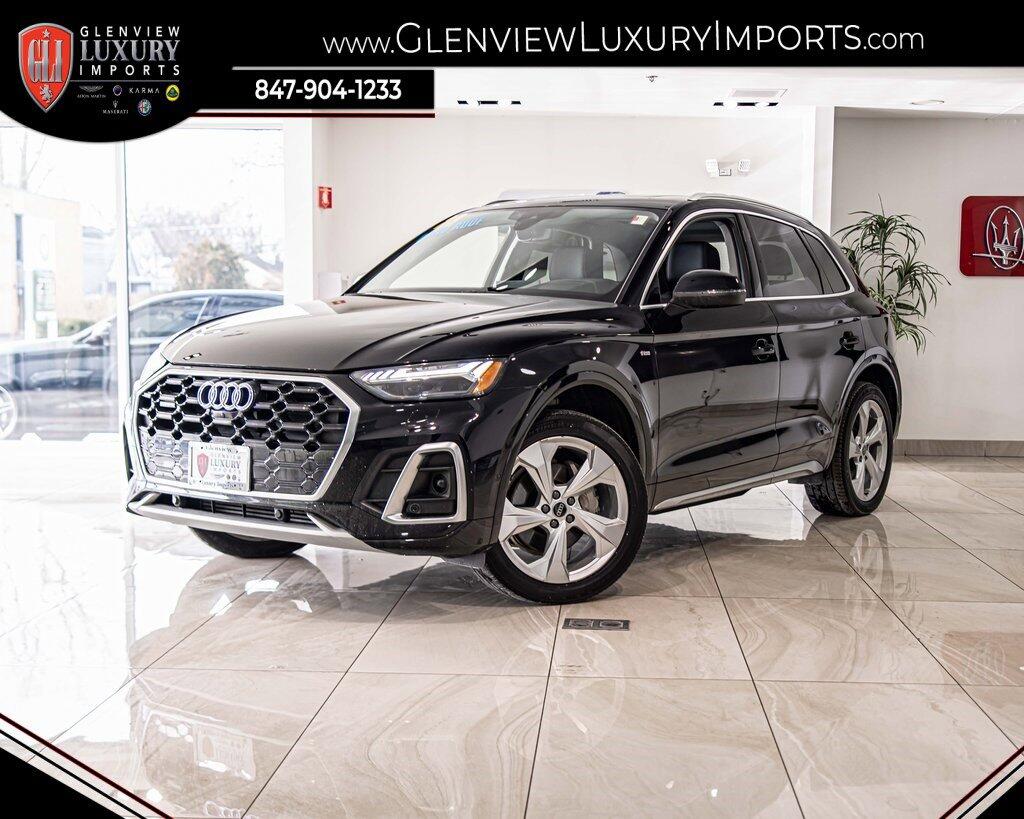 2023 Audi Q5 45 S line Prestige quattro quattro 2.0L Turbocharged Mythos Black Metallic One Owner, Clean CARFAX, AWD, Navigation, Sunroof, Leather Seats, Heated Seats, Backup Camera, Memory Seats, Premium Sound System, Black w/Leather Seating Surfaces, Audi Active Lane Assist, Audi Advanced Key, Audi Connect PLUS, Audi Phone Box, Audi Virtual Cockpit Plus, Auto-Dimming Power Folding Exterior Mirrors, Bang & Olufsen Sound System w/3D Sound, Convenience Package, Driver Seat Memory, Dual Pane Acoustic Glass for Front Side Windows, Hands-On Detection Steering Wheel, Head-Up Display, Heated & Cooled Front Cup Holder, Heated Rear Seats, Heated Steering Wheel, Leatherette Covered Center Console & Door Armrests, LED Interior Lighting Plus Package, Manual Rear Side Window Sunshades, Matrix-Design LED Headlights w/Headlight Washers, MMI Navigation Plus, Navigation Package, Navigation System, Panoramic Sunroof, Park Assist, Power Adjustable Steering Column, Prestige Package, SiriusXM w/360L, Top View Camera System, Traffic Jam Assist, Traffic Sign Recognition, Ventilated Front Sport Seats w/4-Way Power Lumbar, Warm Weather Package, Wheels: 19 5-Double-Arm Design Bi-Color Finish. 22/29 City/Highway MPGOur goal is to make your luxury and exotic car buying and owning experience unlike any other major purchase. With an unmatched attention to detail, truly impressive product lineup, and unique access to OEM parts. We are equipped to provide the ultimate in customer service every time you visit. In fact don?t think of us as a dealership at all. We?re your personal automotive concierge that offers the driving experience that your lifestyle demands. At our dealership, you?ll find a solid selection. If you have any questions for us, you can always get in touch at (847) 904-1233.