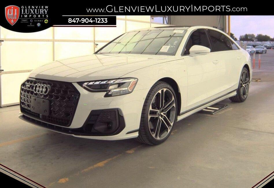 2025 Audi A8 L 55 quattro quattro 3.0L V6 Turbocharged DOHC 24V LEV3-ULEV70 335hp White One Owner, Clean CARFAX, AWD, Navigation, Sunroof, Leather Seats, Heated Seats, Backup Camera, Memory Seats, Cooled Seats, Premium Sound System, Premium Audio, Multi-Zone Climate Control, Bluetooth, Hands-Free, USB Port, Portable Audio Connection, Leather, Adaptive Cruise Assist with Lane Guidance, Alu-Optic Buttons, Audi Side Assist with Pre Sense Rear, Bang & Olufsen Advanced 3D Sound System with 3D Sound, Black Brake Calipers, Black Exterior Trim, Black Optic Package, Executive Package, HD Matrix-Design LED Headlights, Head-Up Display, Headlight Washers, Heated Rear Seats, Intersection Assist, LED Interior Lighting Plus Package, Remote Park Assist Plus, Valcona Leather Seat Upholstery, Wheels: 21 5-Double-Spoke-Star S Design. Recent Arrival! Odometer is 1581 miles below market average! 20/26 City/Highway MPGOur goal is to make your luxury and exotic car buying and owning experience unlike any other major purchase. With an unmatched attention to detail, truly impressive product lineup, and unique access to OEM parts. We are equipped to provide the ultimate in customer service every time you visit. In fact don?t think of us as a dealership at all. We?re your personal automotive concierge that offers the driving experience that your lifestyle demands. At our dealership, you?ll find a solid selection. If you have any questions for us, you can always get in touch at (847) 904-1233.