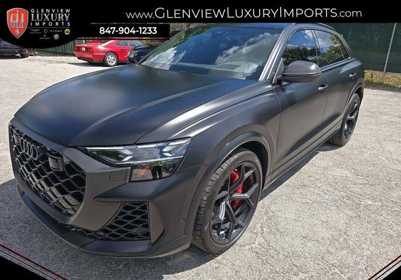 2025 Audi RS Q8 performance 4.0T quattro quattro 4.0L V8 Turbocharged DOHC 32V LEV3-ULEV125 631hp Black One Owner, Clean CARFAX, AWD, Navigation, Sunroof, Leather Seats, Heated Seats, Backup Camera, Memory Seats, Cooled Seats, Premium Sound System, Premium Audio, Multi-Zone Climate Control, Bluetooth, Hands-Free, USB Port, Portable Audio Connection, Black Dinamica Headliner, Black Exterior Trim, Ceramic Brakes with Red Calipers, Dual-Pane Acoustic Glass For Side Windows, Executive Package, Head-Up Display, Heated and Ventilated Sports Seats Plus, Heated Rear Seats, Intersection Assist, Luxury Package, Massage Function For Front Seats, Matte Carbon Inlay Between Taillights, Matte Carbon Mask and Front Bumper Inlays, Matte Carbon Mirror Housings, Matte Carbon Package, Matte Carbon Trim Around Exhaust Tips, Navigation System, Navigation system: Audi MMI Navigation plus with Touch Response, Power Soft-Closing Doors, Remote Park Assist Plus, Ventilated front seats, Wheels: 23 5-Y-Spoke Design Matte Black Finish. Recent Arrival! Odometer is 3985 miles below market average!Our goal is to make your luxury and exotic car buying and owning experience unlike any other major purchase. With an unmatched attention to detail, truly impressive product lineup, and unique access to OEM parts. We are equipped to provide the ultimate in customer service every time you visit. In fact don?t think of us as a dealership at all. We?re your personal automotive concierge that offers the driving experience that your lifestyle demands. At our dealership, you?ll find a solid selection. If you have any questions for us, you can always get in touch at (847) 904-1233.