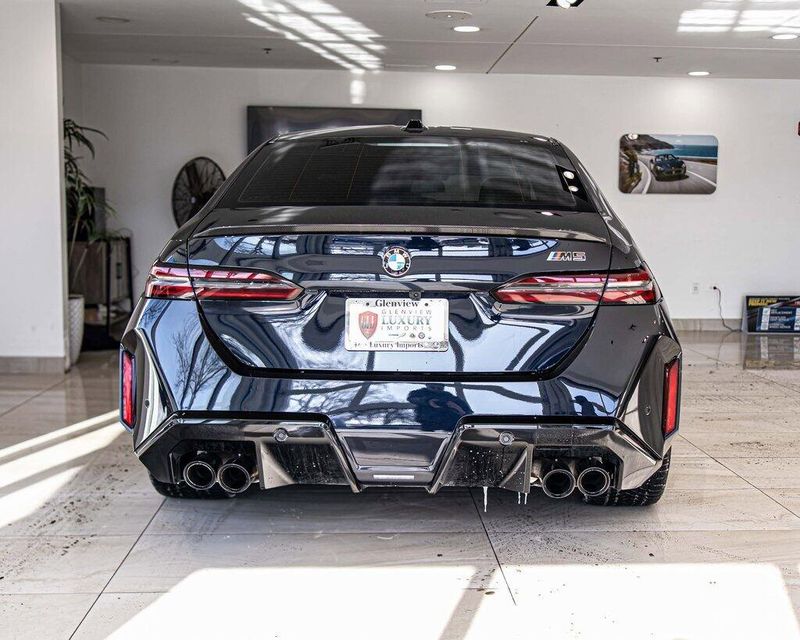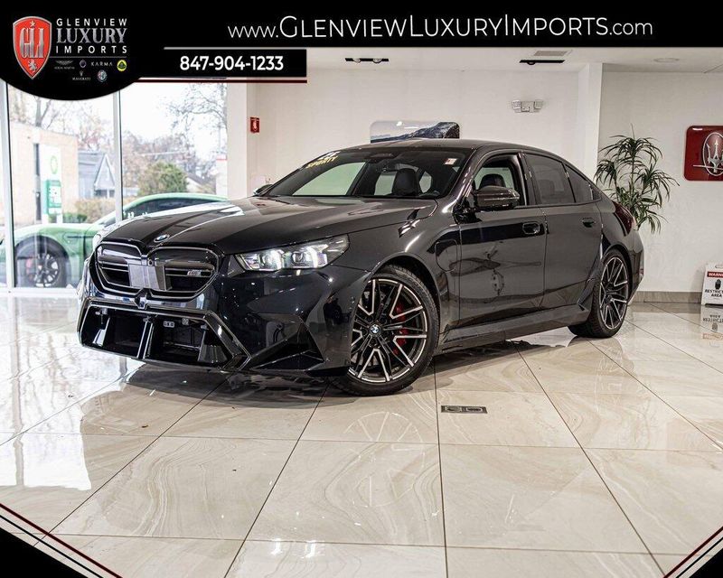 2025 BMW M5 Base AWD 4.4L V8 Turbocharged DOHC 32V LEV3-SULEV30 Carbon Black Metallic Clean CARFAX, AWD, Navigation, Sunroof, Leather Seats, Heated Seats, Backup Camera, Memory Seats, Cooled Seats, Premium Sound System, Silverstone/Black w/Extended Merino Leather Upholstery, Active Driving Assistant Pro, BMW Iconic Glow Kidney Grille, Carbon Fiber Reinforced Polymer Roof, Carbon Package, Connected Package Pro, Driving Assistance Professional Package, Executive Package, Front & Rear Heated Seats, Front Ventilated Seats, Interior Camera, M Carbon Exterior Package, Mirror Caps, Navigation System, Parking Assistant Plus, Power Rear Sunshade & Rear Side Window Shades, Spoiler.Our goal is to make your luxury and exotic car buying and owning experience unlike any other major purchase. With an unmatched attention to detail, truly impressive product lineup, and unique access to OEM parts. We are equipped to provide the ultimate in customer service every time you visit. In fact don?t think of us as a dealership at all. We?re your personal automotive concierge that offers the driving experience that your lifestyle demands. At our dealership, you?ll find a solid selection. If you have any questions for us, you can always get in touch at (847) 904-1233.